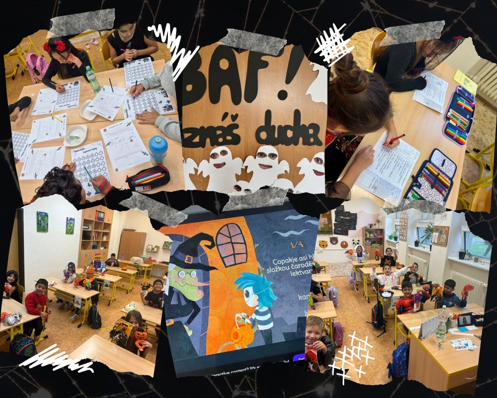 Děti se během dne ponořily do světa strašidelných postav, řešily tematické úkoly, malovaly, tvořily a učily se skrze zábavu. I letos projekt vybízel k využití digitálních prvků – žáci například používali digitální technologie k fotografování obličejů k tvoření nebo si zahráli halloweenskou kvízovou interaktivní hru. Tím si nejen prohloubili své znalosti, ale zároveň rozvíjeli digitální kompetence, které jsou dnes nedílnou součástí moderního vzdělávání.