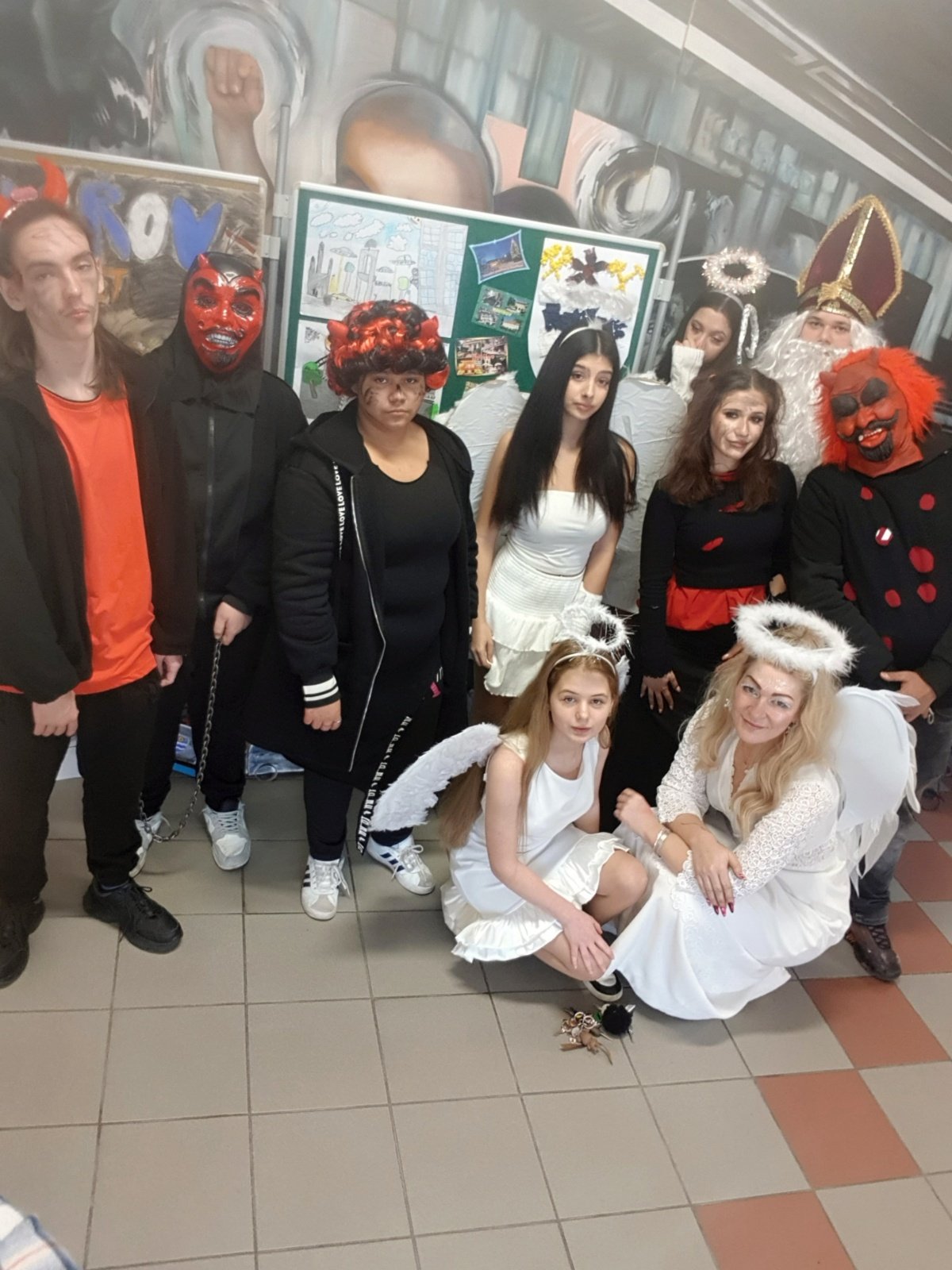 Dne 5. prosince zavítal do naší školy Mikuláš se svou družinou čertů a andělů. Stejně jako každý rok se této milé tradice ujali žáci 9. ročníku, kteří si svou roli připravili s velkou péčí a nadšením.