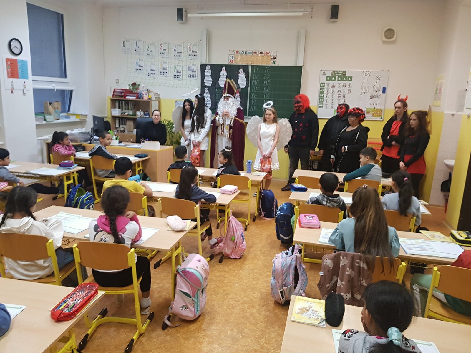 A jako každým rokem, i tentokrát byly ty nejmenší děti z 1. a 2. tříd kouzlem Mikulášské družiny trochu ohromené. Některé se schovávaly za paní učitelky, jiné se dokonce ukryly i pod katedru, odkud nesměle vykukovaly. Dokonce ukápla i mala slzička strachu. Často to byly ale spíš ty roztomilé, dětské obavy, které se po několika slovech Mikuláše a pohlazení andělů rychle rozplynuly – a jejich úsměvy nakonec rozzářily celou třídu.