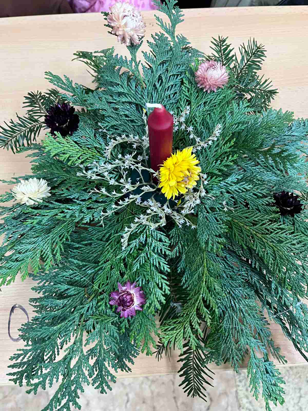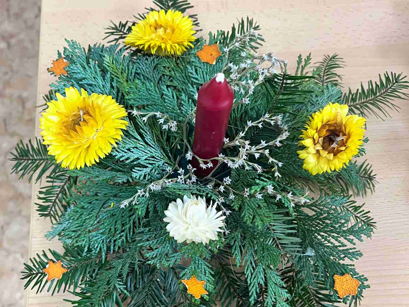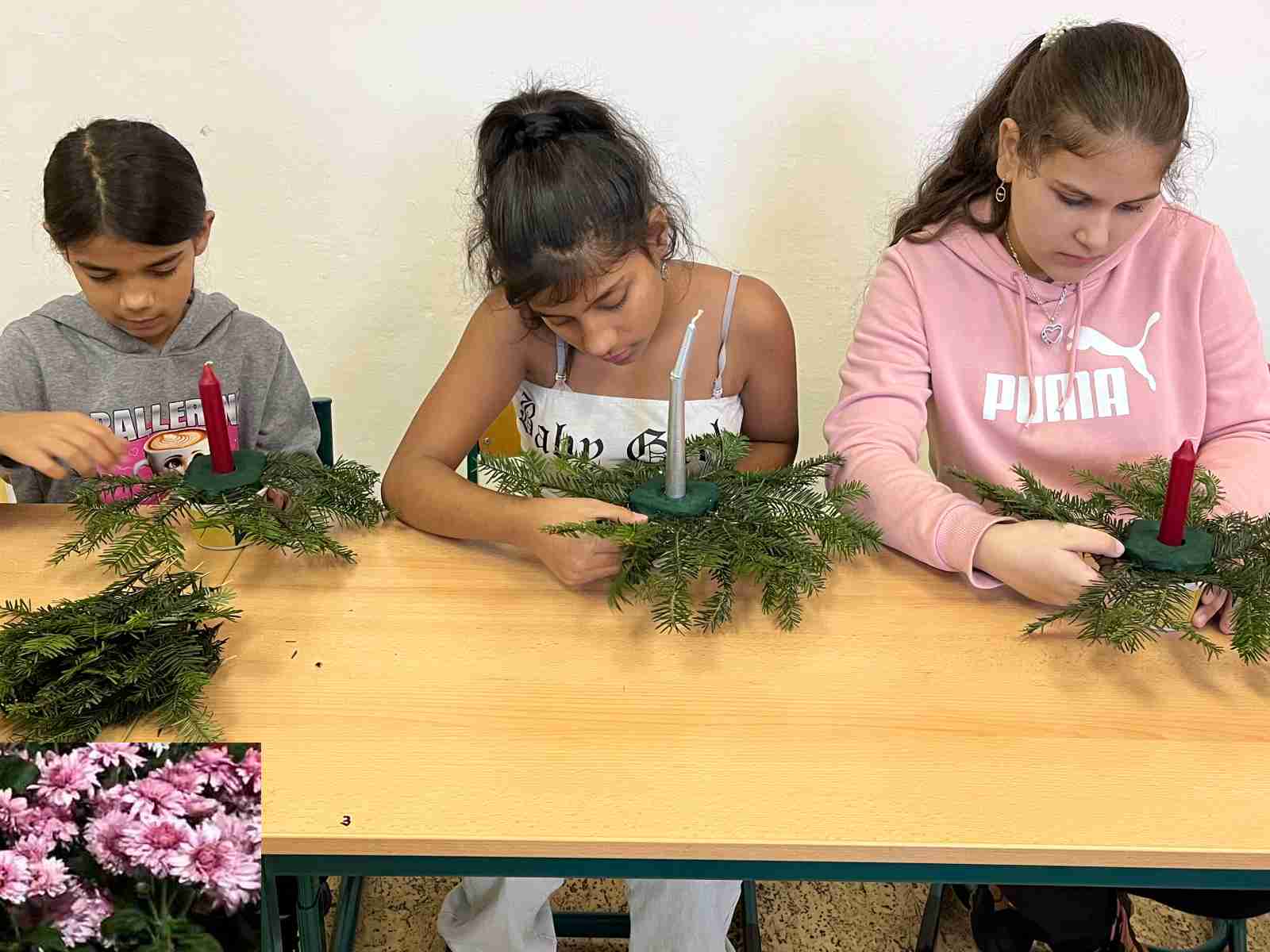 Pod vedením paní učitelky si žáci vyzkoušeli práci s přírodními materiály – větvičkami jehličnanů, šiškami, sušeným ovocem či skořicí. Materiál zajistila paní učitelka, která přinesla i čerstvé větvičky ze své zahrádky. Každý svícen byl originální, doplněný svíčkou a ozdobami podle fantazie tvůrců. Nechyběla ani vůně čerstvého chvojí a vánoční hudba, která dotvářela příjemnou náladu.