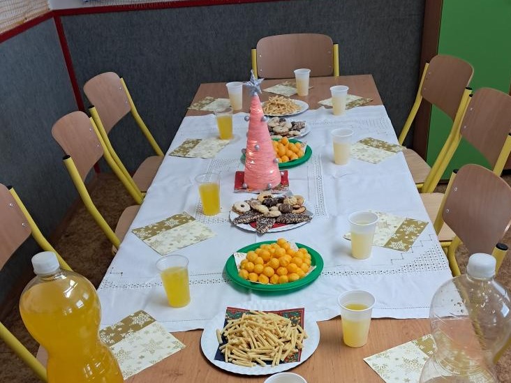 Společně jsme si povídali o vánočních tradicích a o tom, co by si děti přály najít pod stromečkem. Týden jsme zakončili příjemným vánočním posezením u společného stolu. Děti přinesly k ochutnání domácí vánoční cukroví, zazpívali jsme si koledy a popřáli si hodně štěstí a zdraví do nového roku. Všichni jsme si přáli, aby nás i v příštím roce čekala spousta společných zážitků.